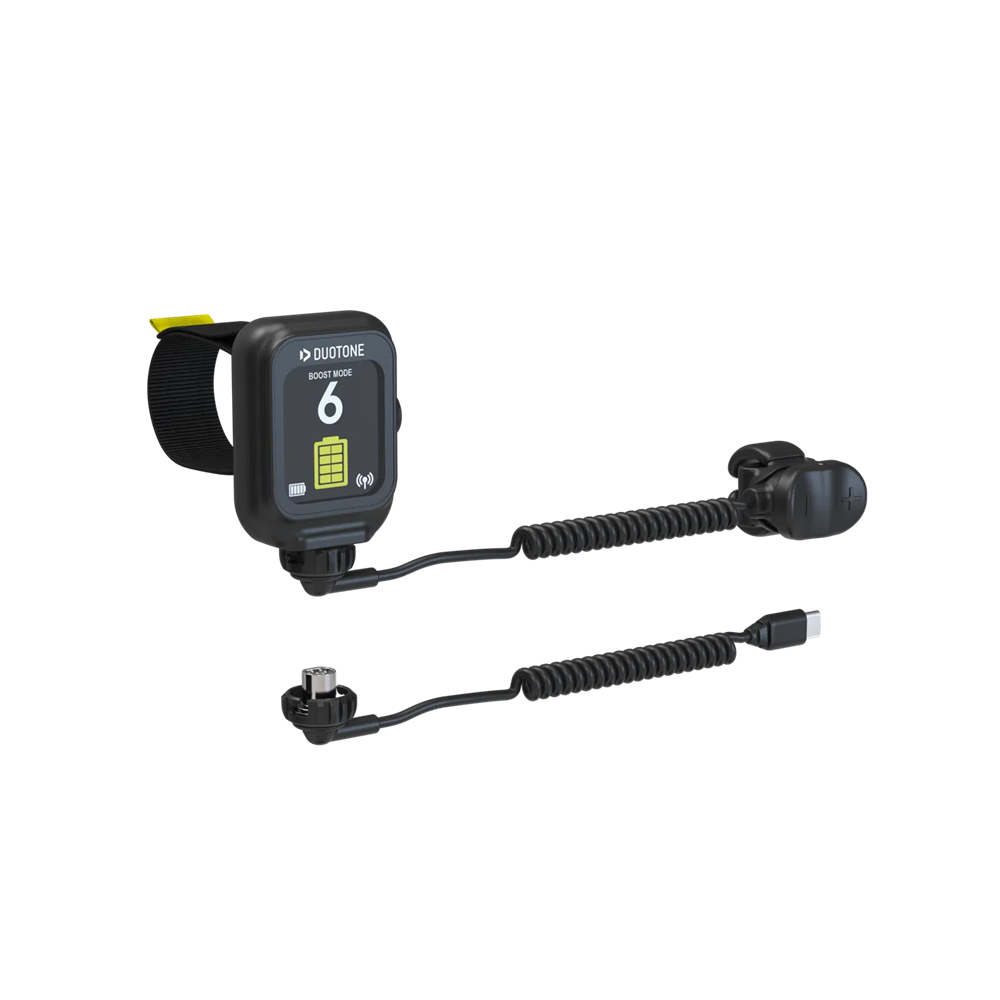 This innovative design allows you to keep your hands free while pushing yourself up from the board, paddling, duck diving, or grabbing the boom of your wing. The remote control is intuitive to use and ensures along with the receiver in the battery box reliable signal transmission to the ESC/motor.